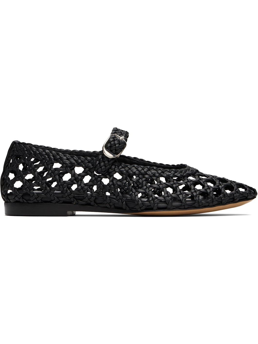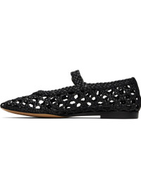Handcrafted woven leather Mary Jane-style ballerina flats in black. · Pin-buckle strap at vamp · Grained calfskin lining · Leather sole with rubber injection Supplier color: Black Upper: leather. Sole: leather, rubber. Made in Italy 251226F118044