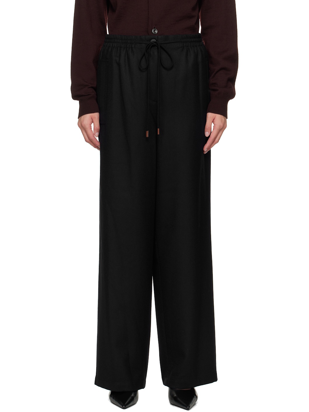 Wool twill trousers. · Drawstring at elasticized waistband · Four-pocket styling · Zip fly Supplier color: Navy Body: 100% wool. Trim: 100% cotton. Made in South Korea 252495F087003