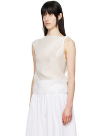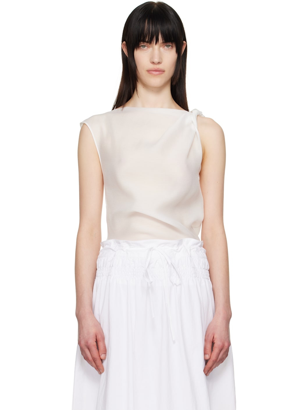 Semi-sheer crinkled tencel-blend crepe tank top. Draping throughout. · Boatneck · Curved hem · Twisted detailing at shoulder Supplier color: White 69% tencel, 31% polyester. Made in South Korea 251495F107000