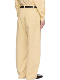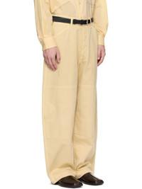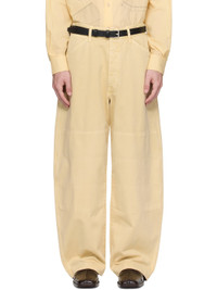 Garment-dyed non-stretch denim jeans. Fading throughout. · Belt loops · Adjustable cinch tabs at waistband · Four-pocket styling · Zip fly · Pleats at front · Reinforced panels at knees · Curved outseams · Partial twill lining Supplier color: Custard Body: 100% cotton. Lining: 100% cotton. Made in Morocco 251646M186000