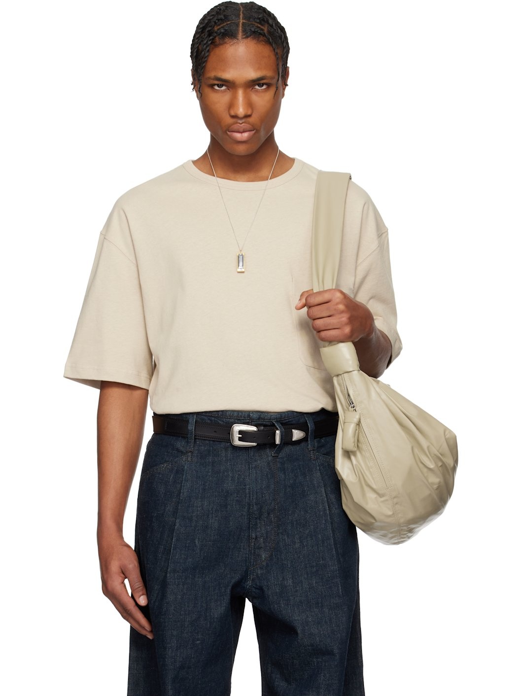 Heavyweight cotton- and linen-blend jersey T-shirt. · Rib-knit crewneck · Patch pocket at chest · Vented side seams · Dropped shoulders Supplier color: Warm beige 70% cotton, 30% linen. Made in Portugal 251646M213009