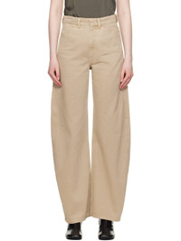 Garment-dyed non-stretch denim jeans. Fading throughout. · High-rise · Belt loops · Four-pocket styling · Zip fly · Curved outseams Supplier color: Natural beige 100% cotton. Made in Morocco 251646F069002