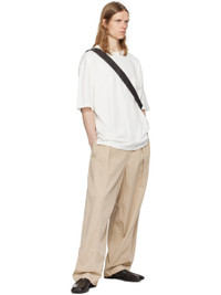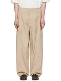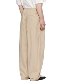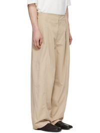 Lightweight tapered cotton twill trousers. · Loose-fit · Belt loops · Four-pocket styling · Zip fly · Pleats at front · Central seam at front legs · Cinch tabs at back waistband · Corozo hardware · Contrast stitching in white Supplier color: Rose beige 100% cotton. Made in Lithuania 251646M191004