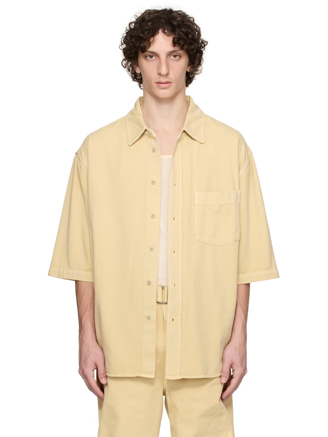 Non-stretch denim shirt. · Spread collar · Button closure · Patch pocket at chest · Droptail hem · Dropped shoulders · Box pleat at back yoke Supplier color: Custard 100% cotton. Made in Morocco 251646M192002