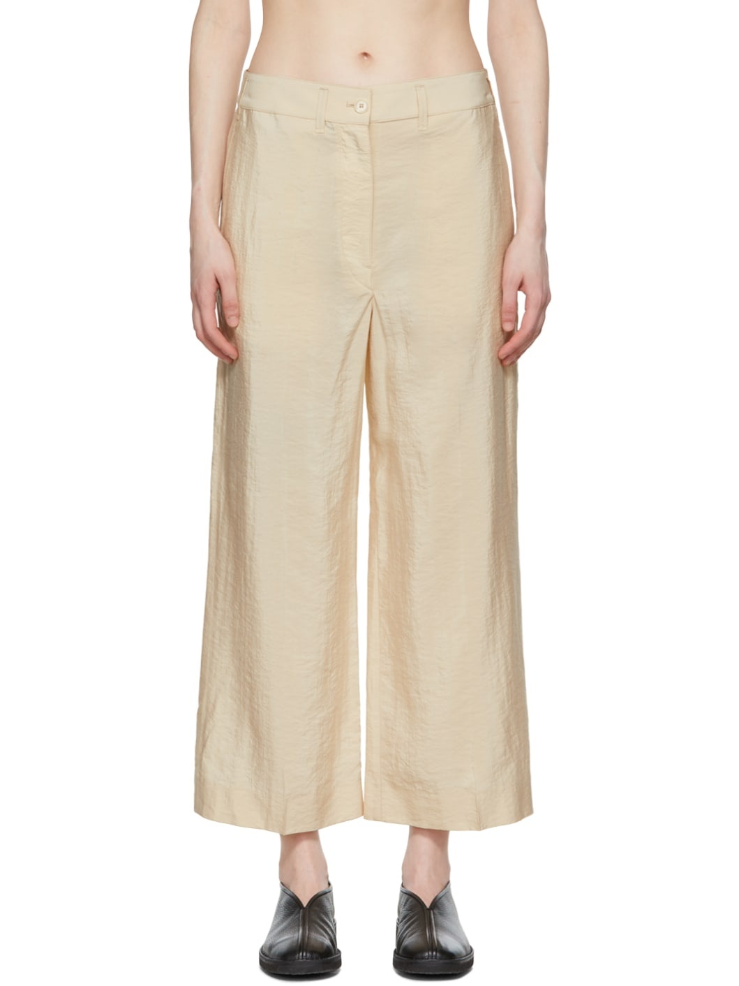 Beige Silk Trousers
