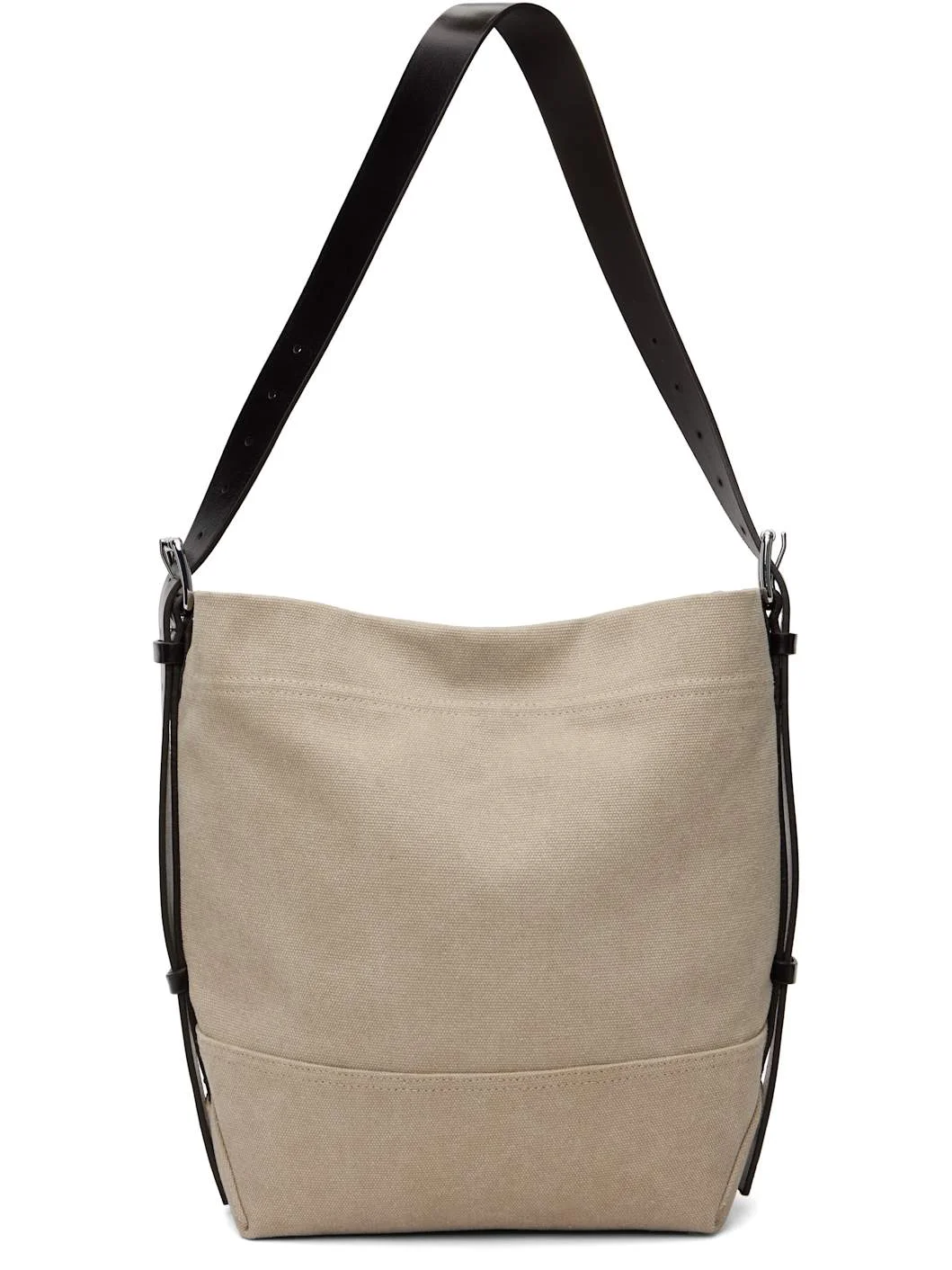 Cotton-blend canvas tote. · Vegetable-tanned leather trim throughout · Adjustable and detachable shoulder strap · Lanyard-clasp closure · Zip pocket at interior · H12" x W13" x D4" Supplier color: Dark Linen Textile. Made in Italy 261646M172008