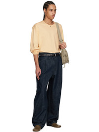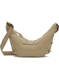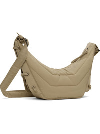 Padded and quilted GRS-certified recycled nylon canvas messenger bag in beige. · Water-repellent and garment-dyed · Adjustable and detachable padded crossbody strap · Lace-up detailing at sides · Zip closure · Zip pocket at interior · Canvas lining · H7.25" x W17" x D4" Supplier color: Linen Textile. Made in Italy 251646M170038