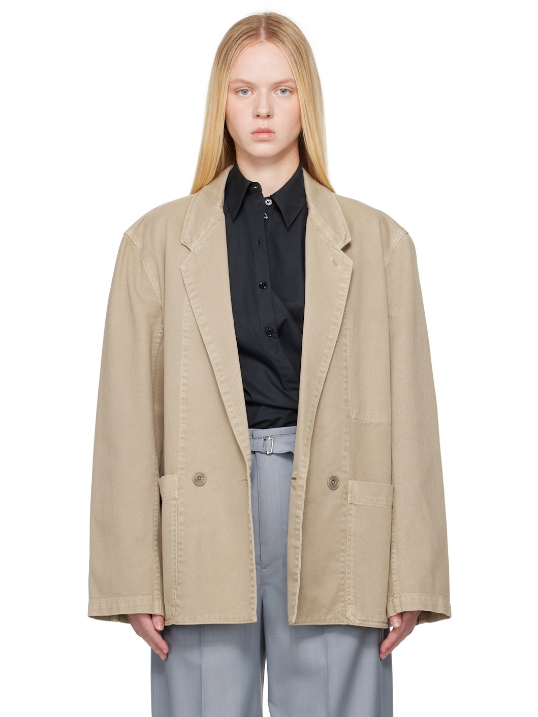 Garment-dyed cotton twill blazer. · Button fastening at notched lapel · Double-breasted closure · Patch pockets · Dropped shoulders · Patch pocket at interior · Unlined · Corozo hardware Supplier color: Natural beige 100% cotton. Made in Morocco 251646F057000