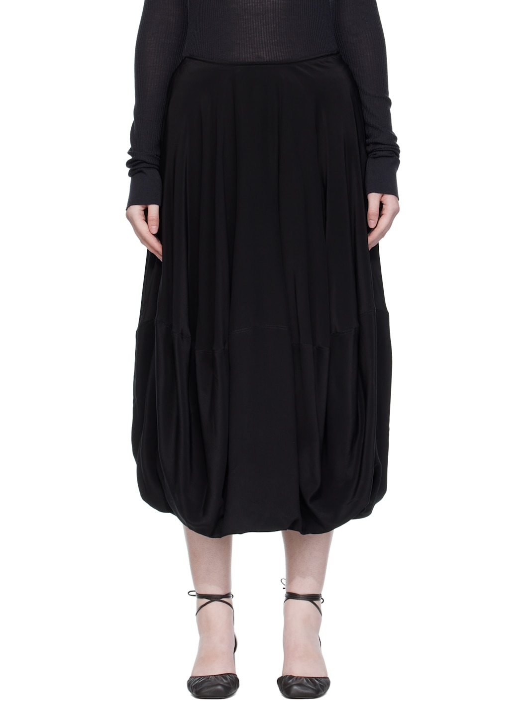 Silk crepe de chine maxi skirt. · Paneled construction · Bubble hem · Concealed zip closure at side seam · Full cotton lawn cloth lining Supplier color: Black Body: 100% silk. Lining: 100% cotton. Made in Portugal 252646F093000