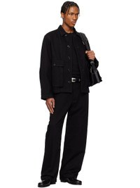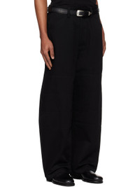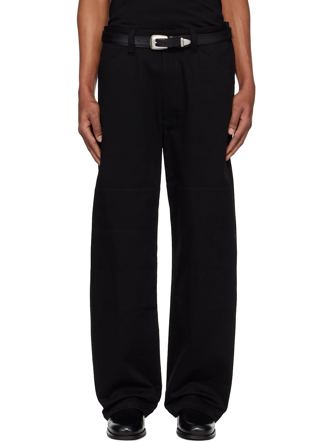 Boxy-fit heavyweight cotton drill trousers. · Belt loops · Four-pocket styling · Button fly · Reinforced panels at legs · Cinch tabs at back waistband Supplier color: Black 100% cotton. Made in Morocco 251646M191013