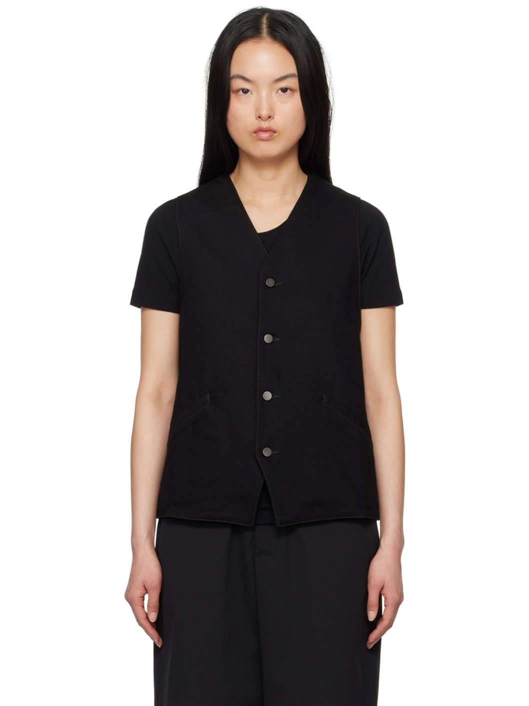 Black Button Denim Vest