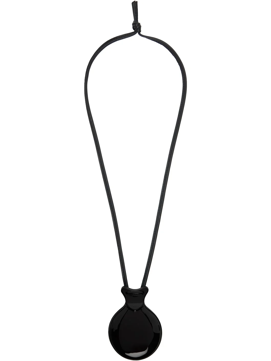 Buffed nappa leather necklace in black. · Acrylic pendant with mirror · Self-tie fastening · L30" · Pendant: H3" x W2.5" Supplier color: Black