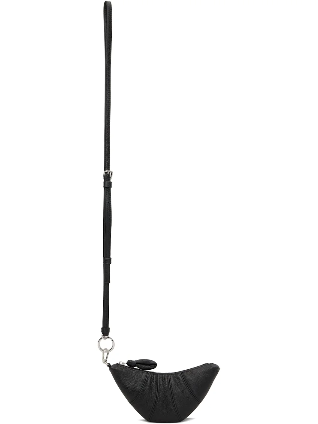Grained leather coin pouch. · Adjustable and detachable crossbody strap · Key ring at top · Zip closure · Cotton canvas lining · H3.5" x W7" Supplier color: Black Leather. Made in Spain 252646M171001