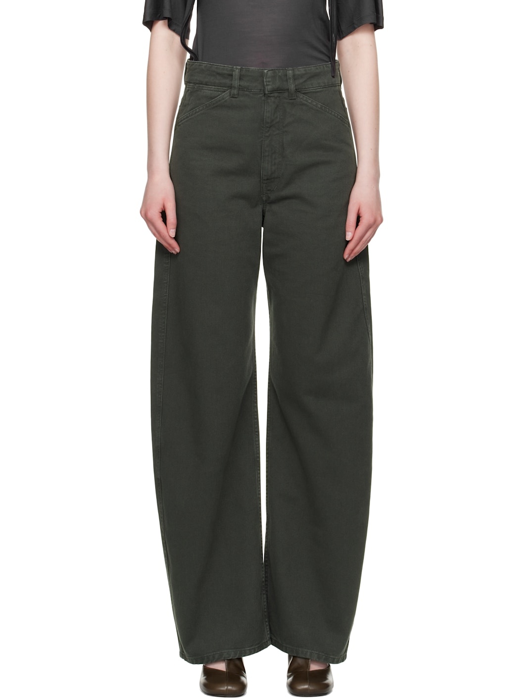 Garment-dyed non-stretch denim jeans. · High-rise · Belt loops · Four-pocket styling · Zip fly · Curved outseams Supplier color: Carbon blue 100% cotton. Made in Morocco 251646F069004