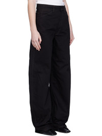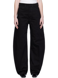 Non-stretch denim jeans. · High-rise · Belt loops · Five-pocket styling · Curved outseams · Leather logo patch at back waistband Supplier color: Black Body: 100% cotton. Pocket lining: 100% cotton. Trim: 100% leather. Made in Morocco 252646F069001