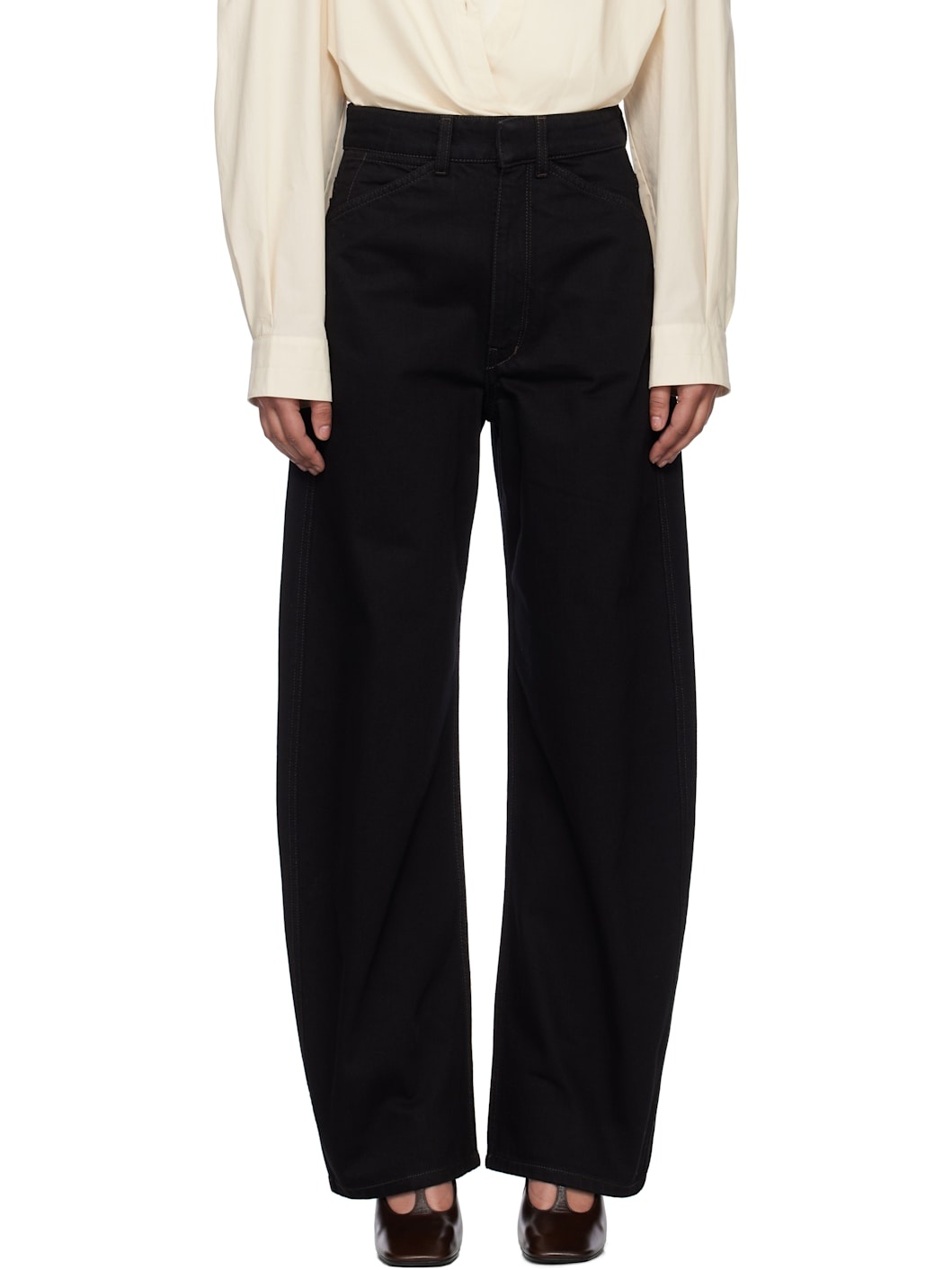 HIGH WAISTED CURVED PANTS HEAVY BLACK DENIM