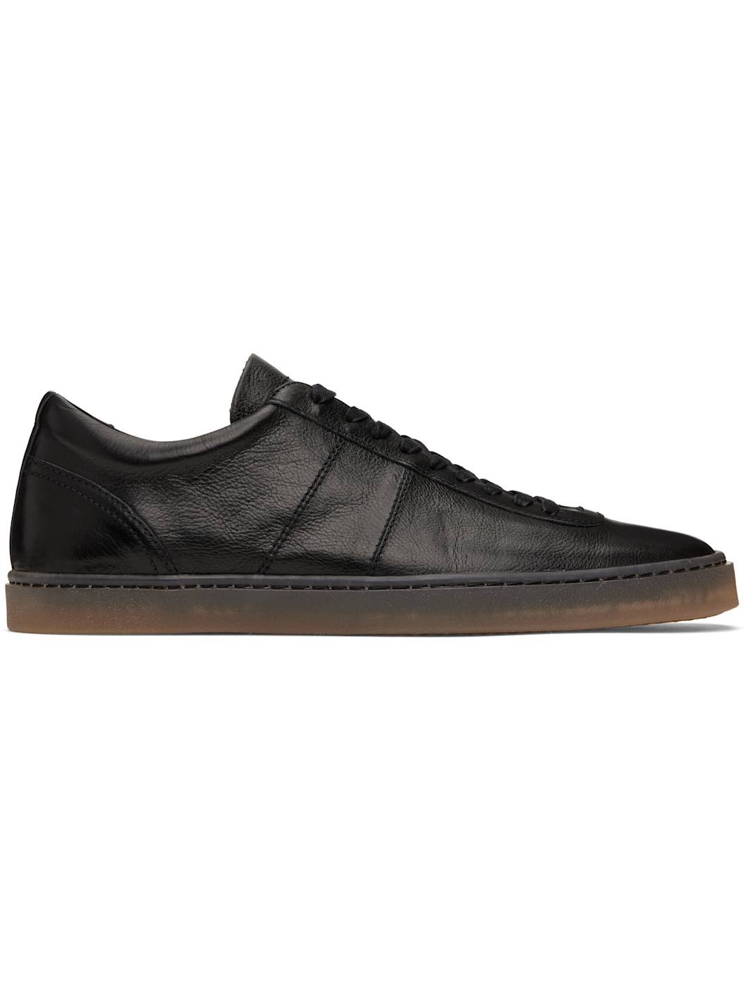 Low-top LWG-certified grained calfskin sneakers in black. · Square toe · Lace-up closure · Padded collar · Buffed leather lining · Treaded rubber sole Supplier color: Black Upper: calfskin. Sole: rubber. Made in Portugal 251646M237001