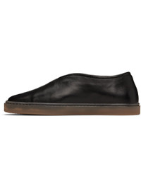 Grained leather loafers in black. · Square toe · Piping at vamp and collar · Buffed leather lining · Treaded rubber sole Supplier color: Black Upper: leather. Sole: rubber. Made in Portugal 251646F121005