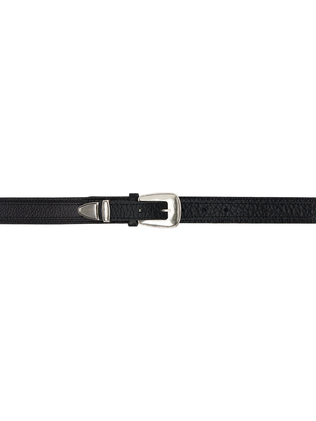 Grained leather belt in black. · Hardware at end · Detachable buckle at pin-buckle fastening · Antiqued silver-tone hardware · W1.25" Supplier color: Black Leather. Made in Italy 251646M131003