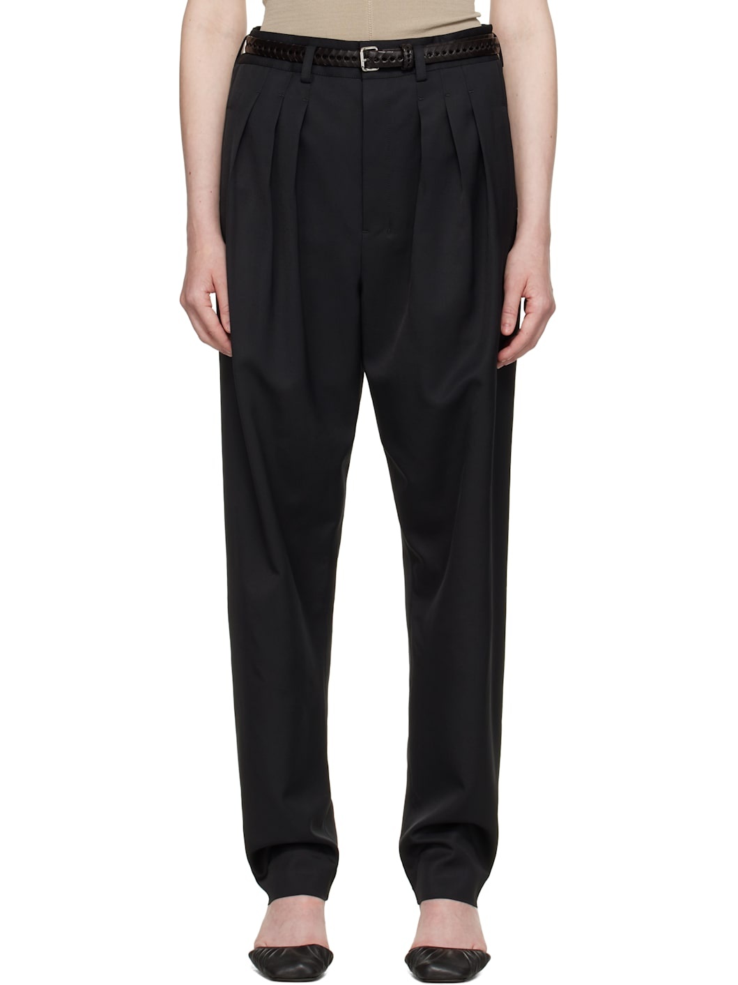 Lightweight wool-blend gabardine trousers. · Belt loops · Four-pocket styling · Zip fly · Pleats at front Supplier color: Black Body: 54% wool, 46% viscose. Lining: 100% cotton. Made in Slovakia (Slovak Republic) 251646F087013