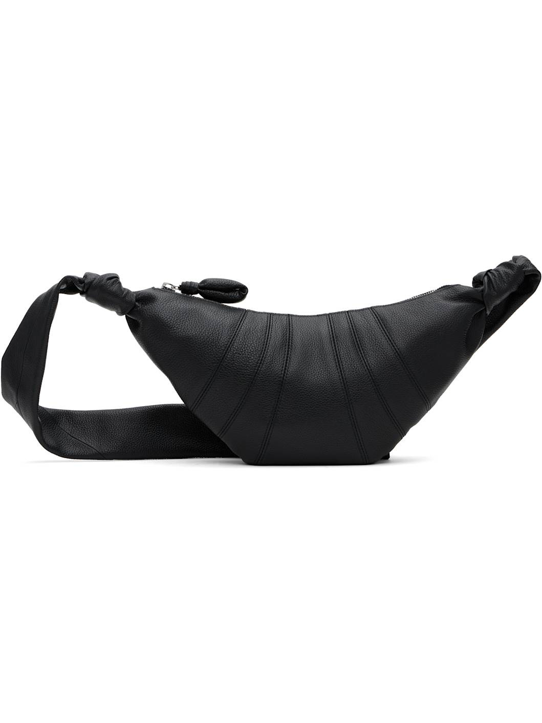Grained leather shoulder bag. · Fixed knotted crossbody strap · Padded pull-tab at zip closure · Patch pocket at interior · Cotton canvas lining · H7" x W13.5" x D2" Supplier color: Black Leather. Made in Spain 252646M170053