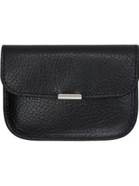 Vegetable-tanned grained leather card holder. · LWG-certified leather · Logo embossed at back face · Press-stud closure · Two card slots · H3" x W4.25" Supplier color: Black Leather. Made in Spain 252646M163003