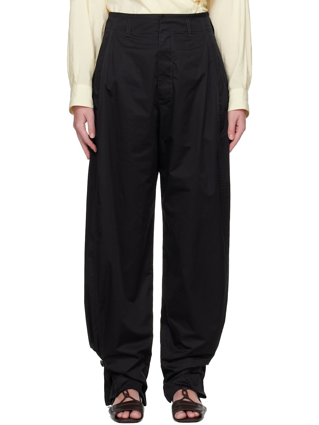 Loose-fit lightweight cotton satin trousers. · Belt loops · Four-pocket styling · Zip fly · Button fastening at cuffs · Twisted outseams · Contrast stitching in gray Supplier color: Black 100% cotton. Made in Romania 251646F087010