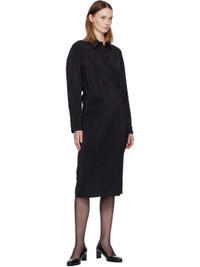 Crinkled silk-blend sateen midi dress. · Wrap construction · Spread collar · Button closure · Pleats at buttoned barrel cuffs Supplier color: Black 76% silk, 24% polyamide. Made in Romania 252646F054013