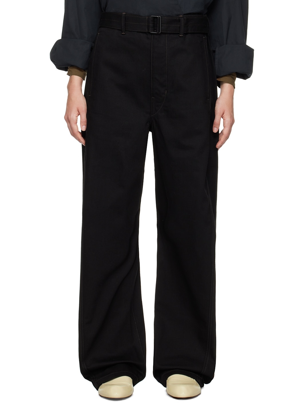 Heavyweight non-stretch denim jeans. · Belt loops · Detachable cinch belt at waistband · Four-pocket styling · Zip-fly · Twisted outseams · Contrast stitching in gray Supplier color: Black 100% cotton. Made in Morocco 242646F069005