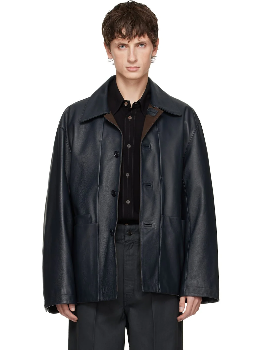 Grained leather jacket. · Spread collar · Button closure · Patch pockets at front · Button fastening at cuffs · Welt pockets at interior · Full cotton twill lining Supplier color: Asphalt Body: 100% leather. Lining: 100% cotton. Made in Turkey 252646M181004