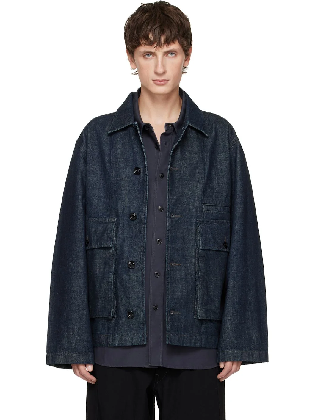 Heavyweight non-stretch denim jacket. · Spread collar · Button closure · Welt pocket at chest · Flap and seam pockets at waist · Button fastening at cuffs · Twin pleats at back yoke · Adjustable button tabs at back hem · Corozo hardware Supplier color: Denim indigo Body: 100% cotton. Made in Italy 252646M177001