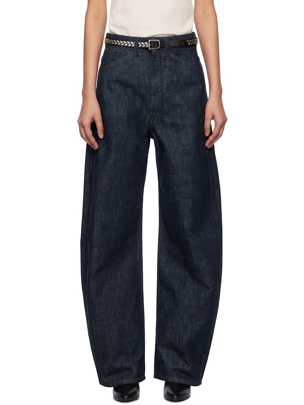 Straight-leg non-stretch denim jeans. · High-rise · Belt loops · Five-pocket styling · Zip fly · Contrast stitching in brown Supplier color: Denim indigo 100% cotton. Made in Morocco 251646F069012