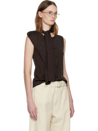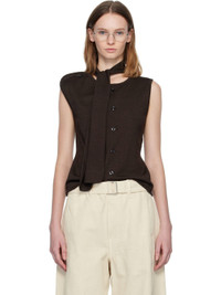 Brown Asymmetrical Sleeveless Cardigan