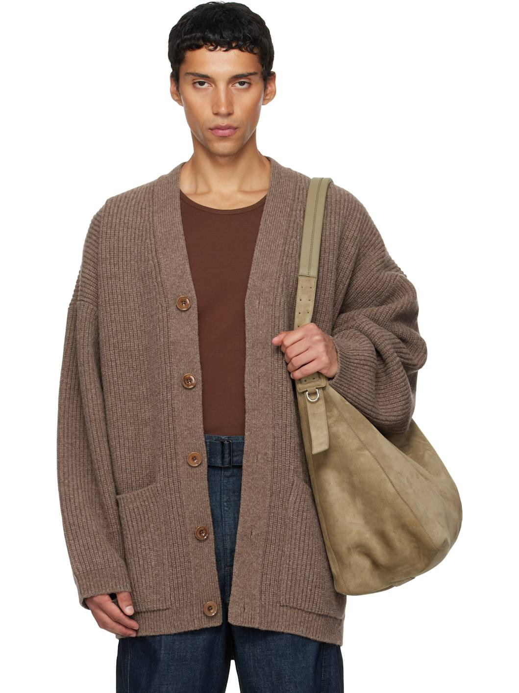 Rib-knit Shetland wool cardigan. · Y-neck · Button closure · Patch pockets at front · Dropped shoulders Supplier color: Hazelnut melange 100% wool. Made in Italy 252646M200002