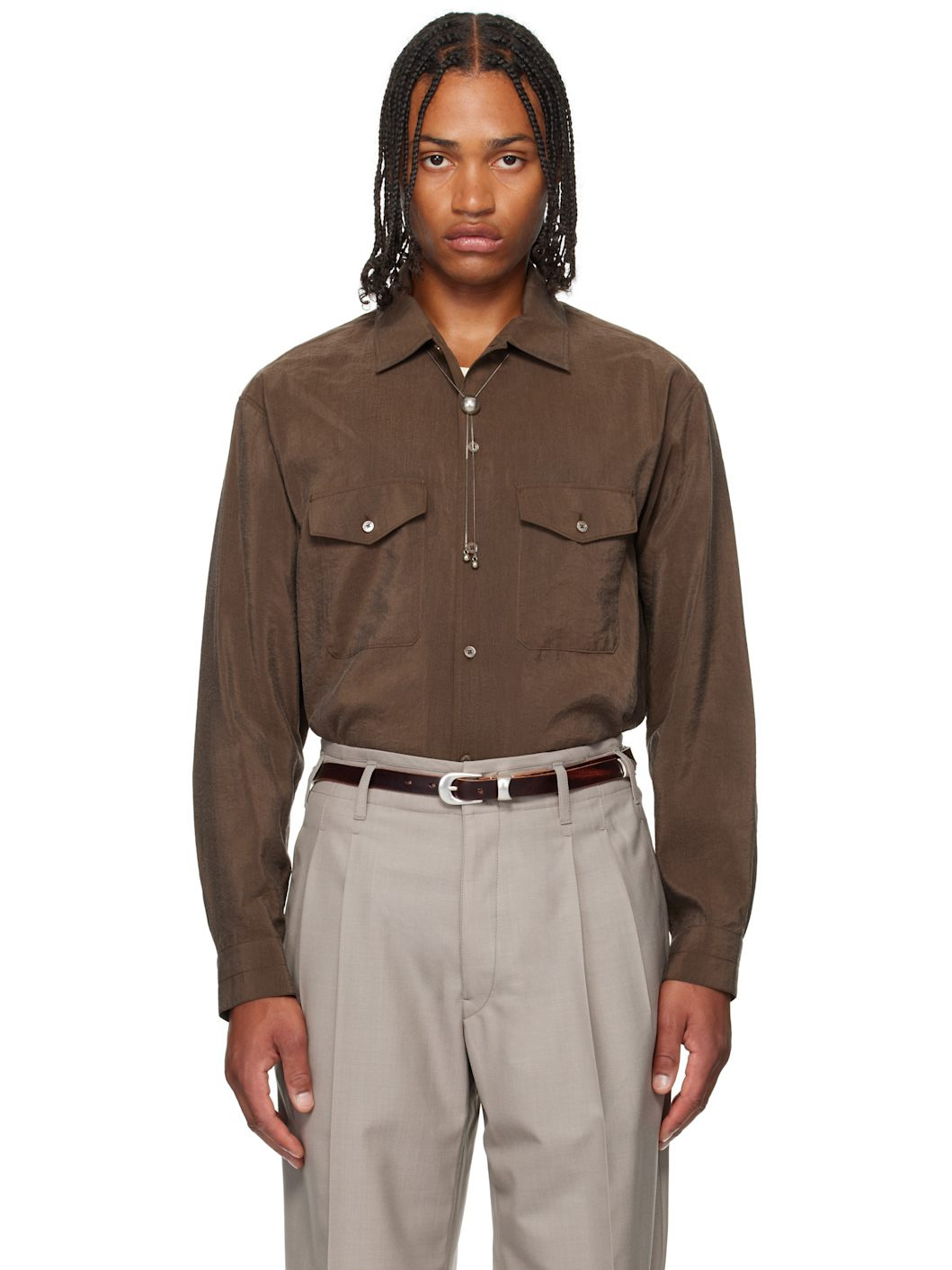Brown Convertible Collar Shirt