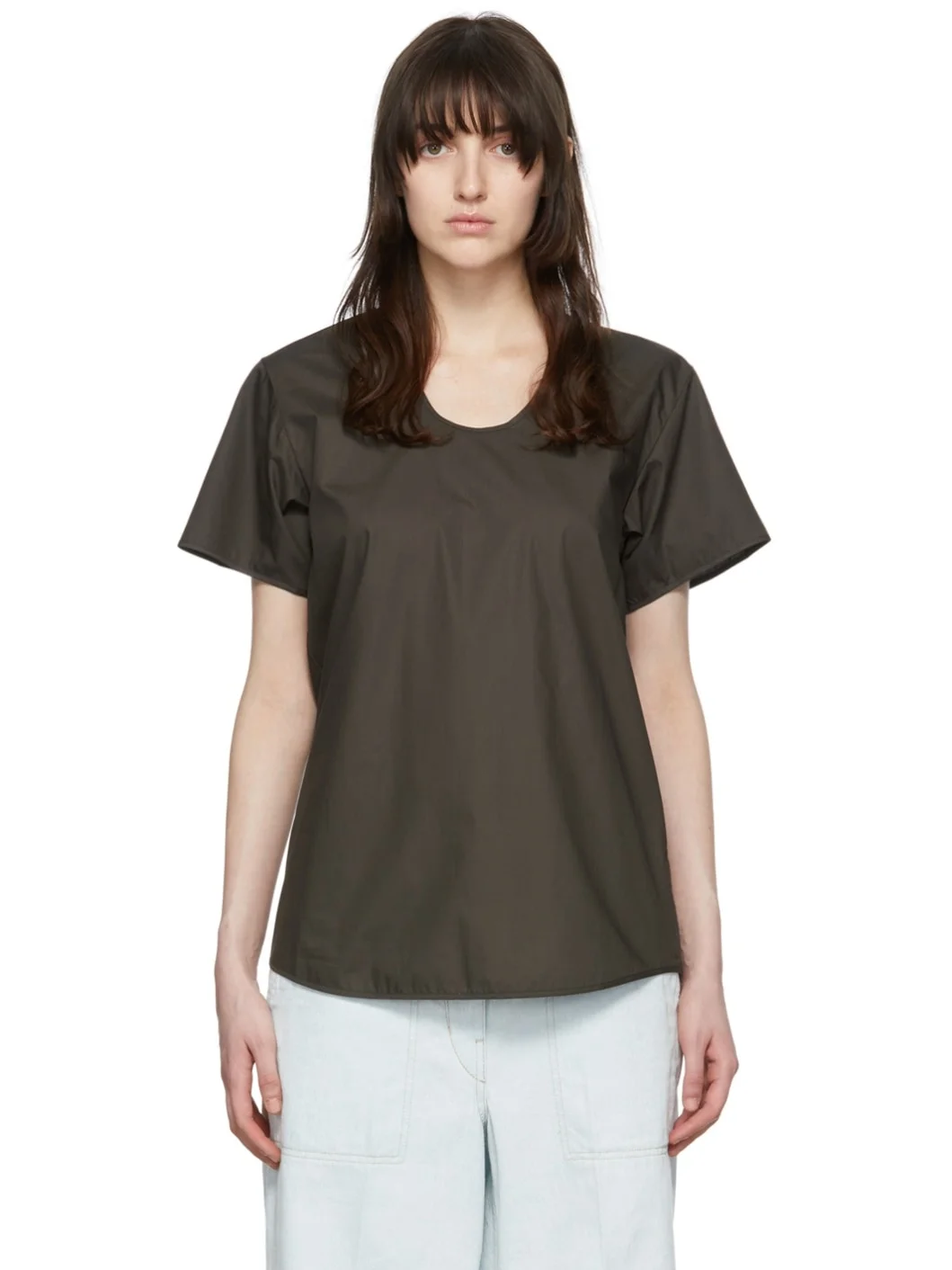 Cotton poplin T-shirt. · Scoop neck · Drop-tail hem Supplier color: Espresso 100% cotton.