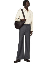 Nappa lambskin messenger bag. · LWG Gold-certified lambskin · Fixed knotted crossbody strap · Zip pocket with padded pull-tab at side · Padded pull-tab at zip closure · Patch pocket at interior · Detachable zip pouch-on-lanyard at interior · Cotton canvas lining · H11" x W23" x D2.5" Supplier color: Dark chocolate Lambskin. Made in Spain 252646M170046