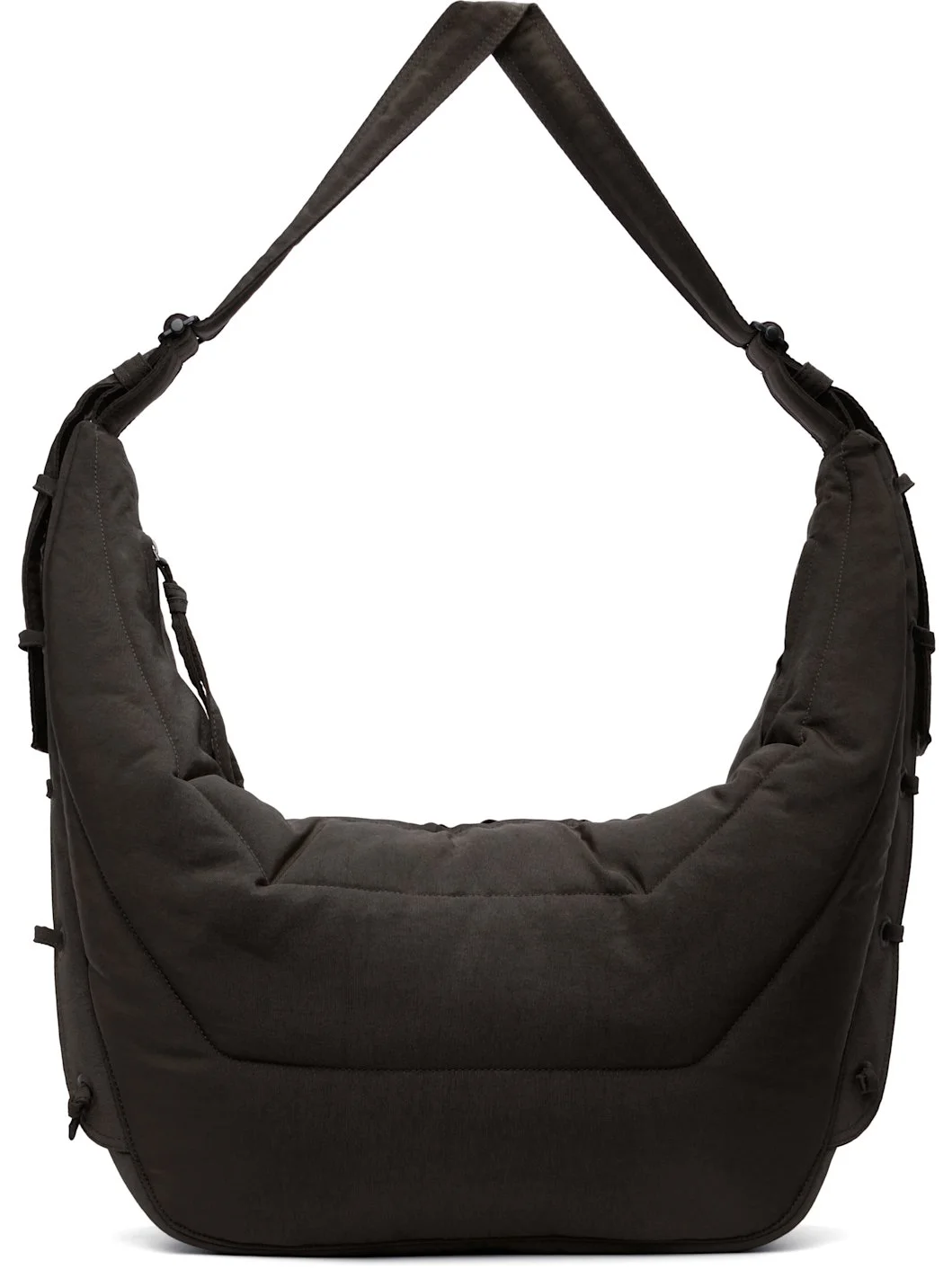 Padded and quilted recycled nylon canvas messenger bag. · GRS-certified recycled nylon · Water-repellent · Adjustable crossbody strap · Lace-up detailing at sides · Zip closure · Zip pocket at interior · H13" x W25" x D6" Supplier color: Dark Chocolate Textile. Made in Italy 252646M170066