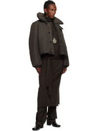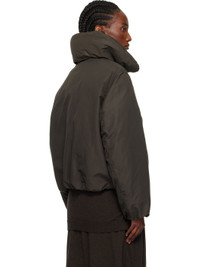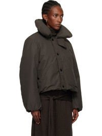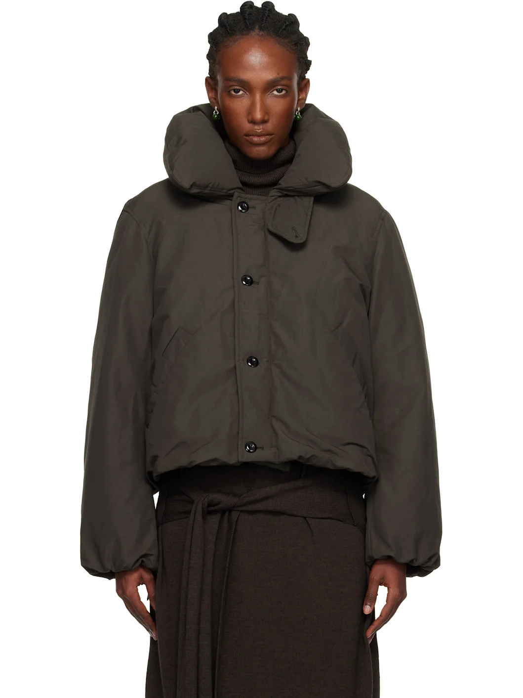 Down-filled nylon- and linen-blend broadcloth jacket. · Water-repellent · Button throat guard at spread collar · Zip closure with button placket · Welt pockets at waist · Bungee-style drawstring at hem · Elasticized cuffs · Full quilted twill lining Supplier color: Dark espresso Body: 44% polyamide, 32% linen, 24% cotton. Fill 1: 80% white duck down, 20% white duck feather. Fill 2: 100% polyester. Lining 1: 100% cotton. Lining 2: 100% cotton. Lining 3: 100% polyamide. Made in Tunisia 252646F061001