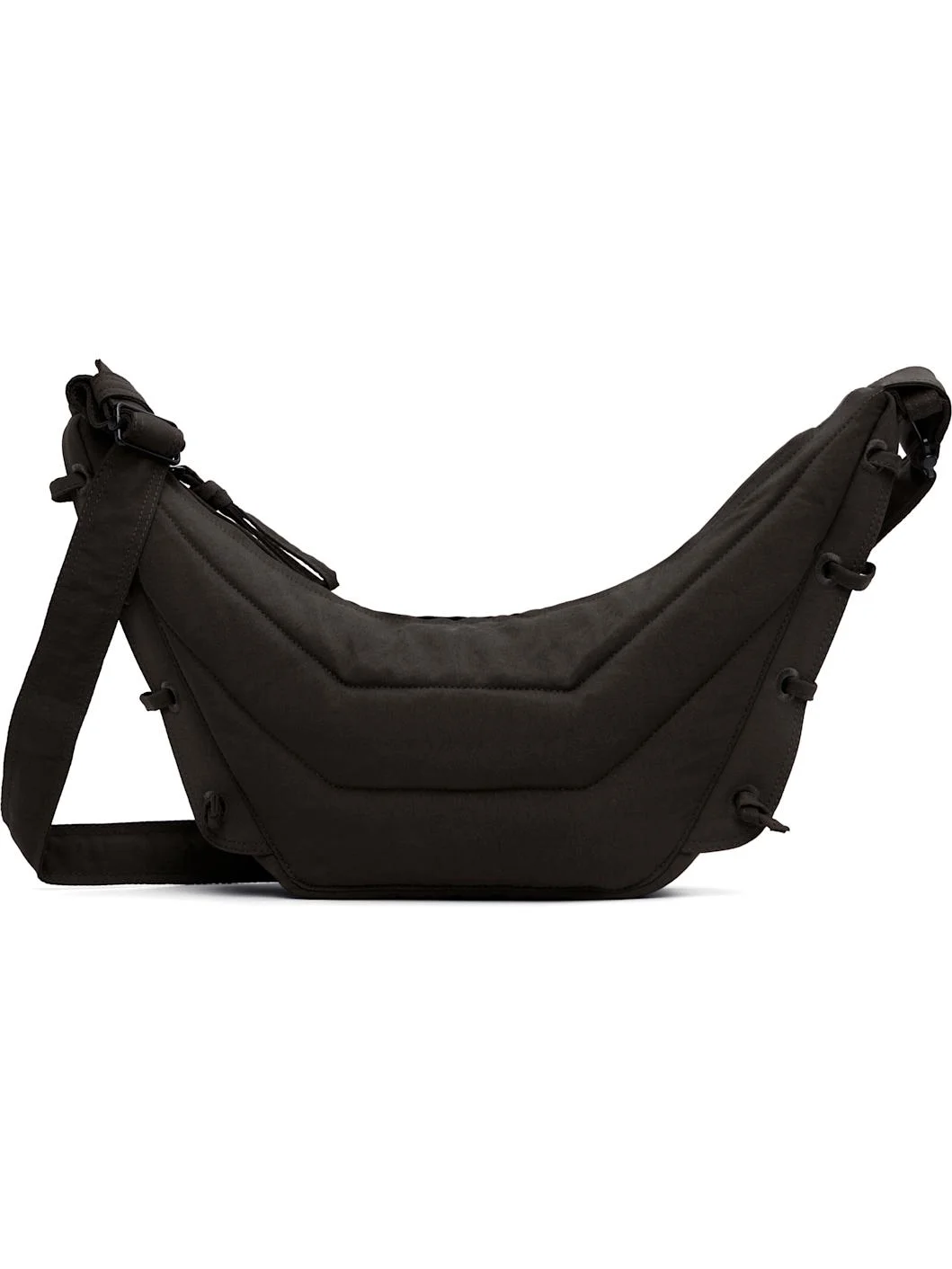 Padded and quilted nylon canvas messenger bag. · Water-repellent · Adjustable crossbody strap · Lace-up detailing at sides · Zip closure · Zip pocket at interior · Nylon canvas lining · H7" x W12" x D4" Supplier color: Dark chocolate Textile. Made in Italy 252646M170069