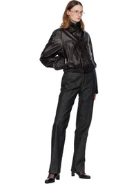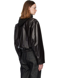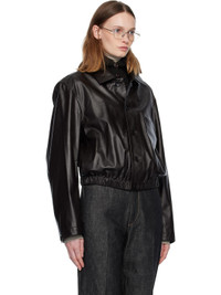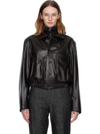 Grained leather jacket. · Spread collar · Button closure · Welt pocket at chest · Seam pockets at waist · Elasticized cropped hem · Button fastening at cuffs · Welt pocket at interior · Full twill lining Supplier color: Black cherry Body: 100% leather. Lining 1: 51% viscose, 49% cotton. Lining 2: 100% cotton. Made in Turkey 252646F064004