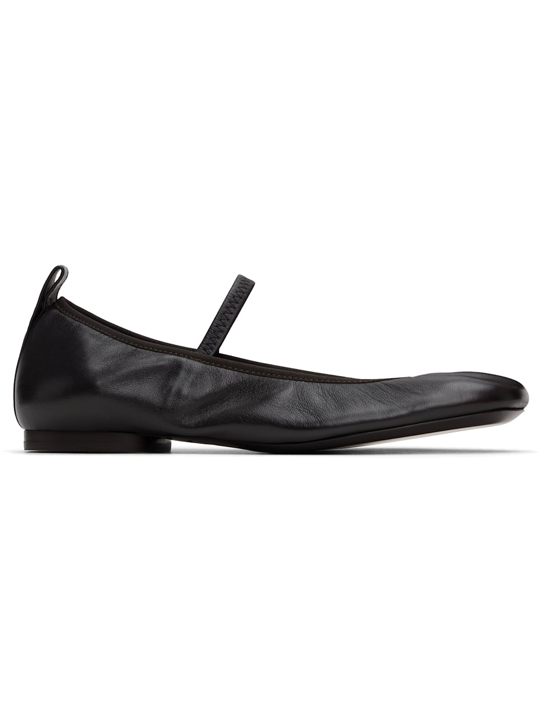 Nappa leather ballerina flats in brown. · Elasticized strap at vamp · Pull-loop at heel tab · Suede and nappa lambskin lining · Stacked leather and rubber heel · Leather sole Supplier color: Dark chocolate Upper: leather. Sole: leather, rubber. Made in Portugal 242646F118002
