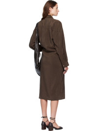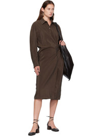 Silk-blend poplin midi dress. · Spread collar · Button closure · Button fastening at side seam for cinch styling · Adjustable buttoned barrel cuffs Supplier color: Brunette 76% silk, 24% polyamide. Made in Romania 252646F054005