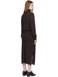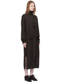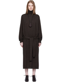 Knit wool-blend midi dress. · Exposed seams throughout · Rib-knit turtleneck, hem, and cuffs · Self-tie sweater-style panel at waist · Vented side seams Supplier color: Dark cacao 50% wool, 50% acrylic. Made in Portugal 252646F054011