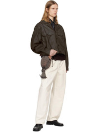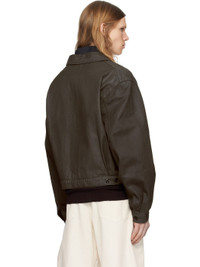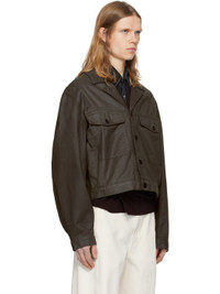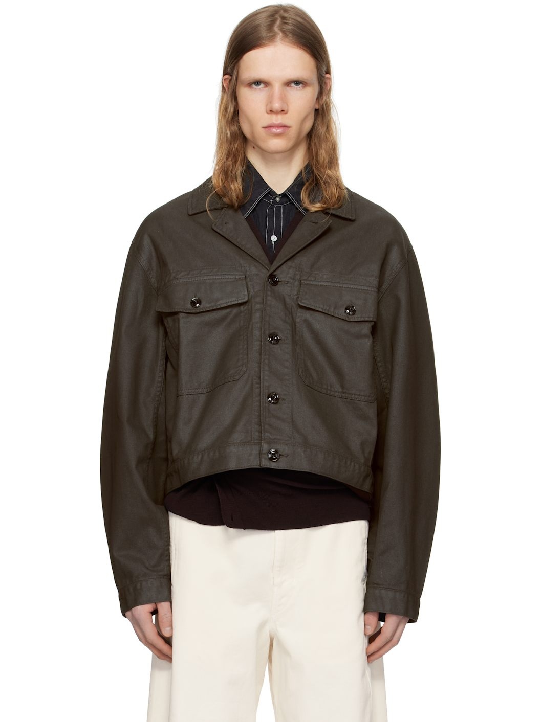 Garment-dyed and coated non-stretch denim jacket. · Boxy-fit · Spread collar · Button closure · Flap pockets · Pleats at front and back hem · Buttoned barrel cuffs · Adjustable button tabs at back hem Supplier color: Dark chocolate 100% cotton. Made in Morocco 251646M177003