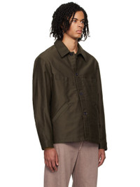 Heavyweight cotton-blend satin jacket. · Spread collar · Button closure · Welt pockets · Twisted sleeves · Adjustable single-button barrel cuffs · Brushed cotton twill lining · Corozo hardware Supplier color: Dark brown