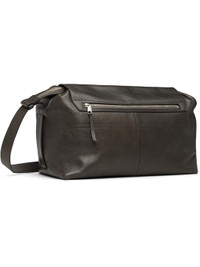 Vegetable-tanned grained leather duffle bag. · LWG-certified leather · Adjustable crossbody strap · Flap pockets at face · Zip pocket and embossed logo at back face · Press-release flap · Zip closure · Suede lining · H11" x W17" x D8" Supplier color: Espresso Leather. Made in Spain 252646M169002