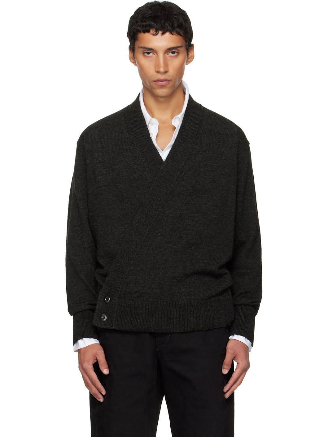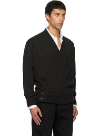 Knit alpaca-blend cardigan. · Rib-knit Y-neck, hem, and cuffs · Offset button closure · Dropped shoulders Supplier color: Dark espresso 45% acrylic, 40% alpaca, 15% wool. Made in Portugal 252646M200001