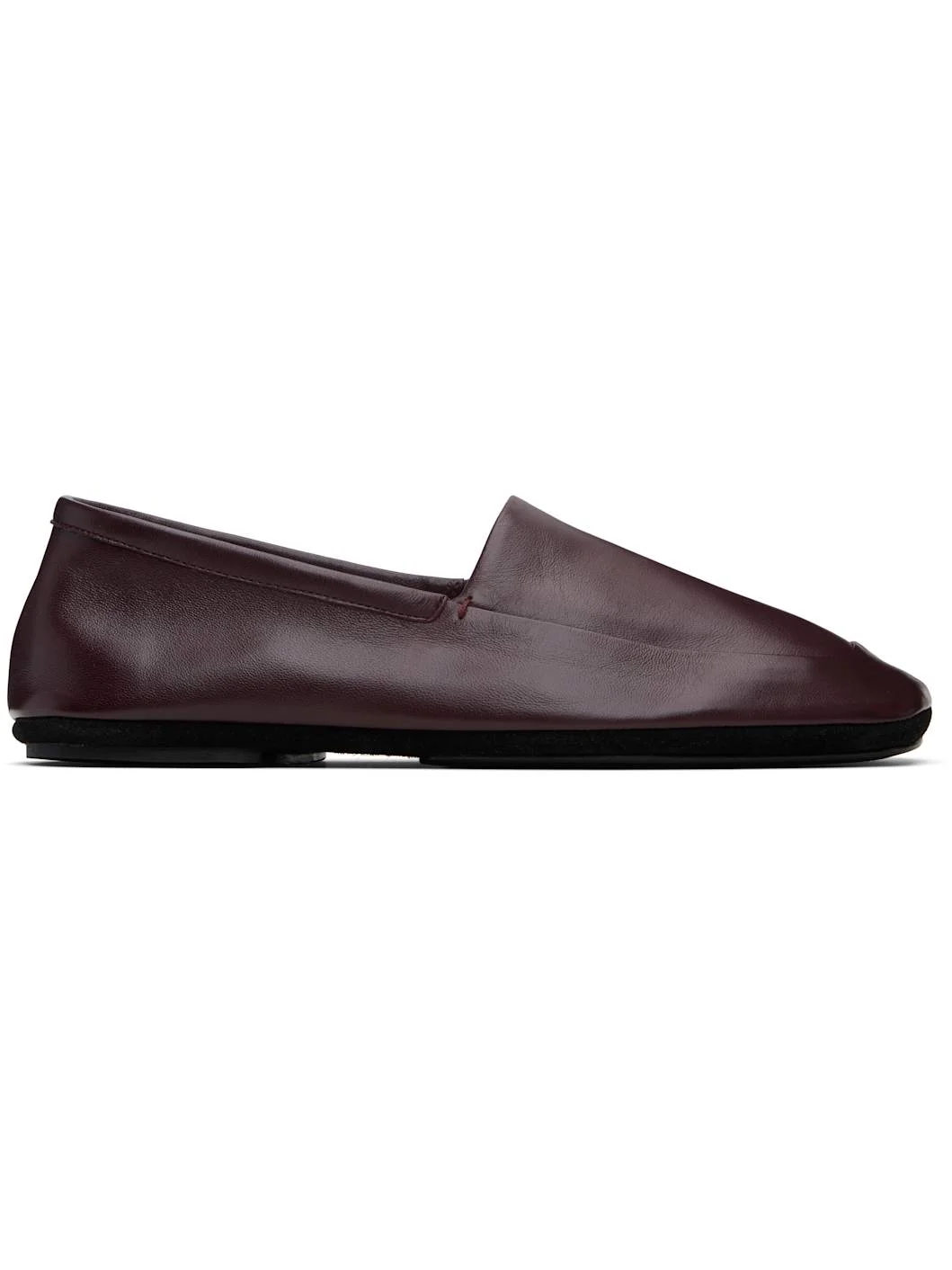 Grained nappa lambskin loafers. · LWG-certified lambskin · Square toe · Buffed lambskin lining · Suede midsole · Leather sole with rubber injections Supplier color: Dark eggplant Upper: lambskin. Sole: leather, rubber. Made in Portugal 252646M231007
