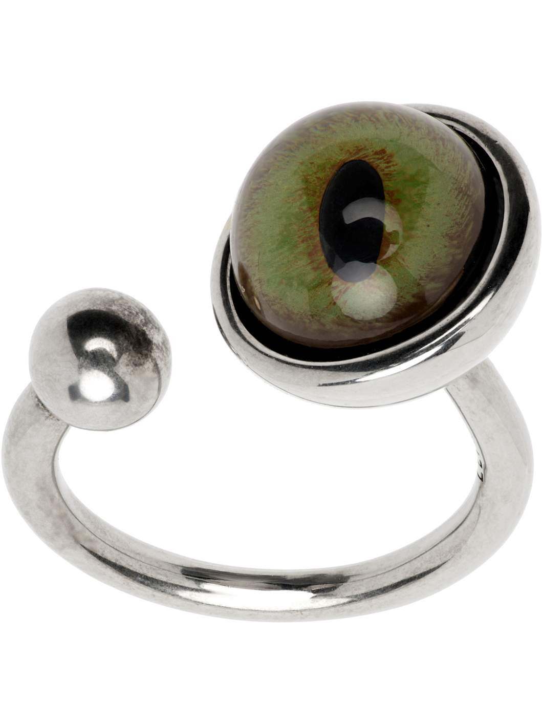 Cuff ring in antiqued silver-tone brass. Glass stone with printed graphic at face. Supplier color: Water green Brass, glass. Made in Italy 252646F024002